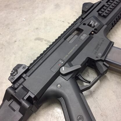 Drop in Mini AK Style Safety Selector for the LEFT or RIGHT side of your CZ Scorpion EVO3 S1. These selectors are 30% shorter than our standard Scorpion AK style safety selector, allowing them to also be used on the left side of the weapon without interfering with the operation of the bolt release lever. The “AK style” design allows the operator to comfortably and intuitively manipulate the safety with a simple flick of their index finger. Laser etched with a position indicator to clearly communicate safe/fire weapon status to other operators. Machined from billet 6061T6 aluminum and hard coat anodized to MIL-A-8625.