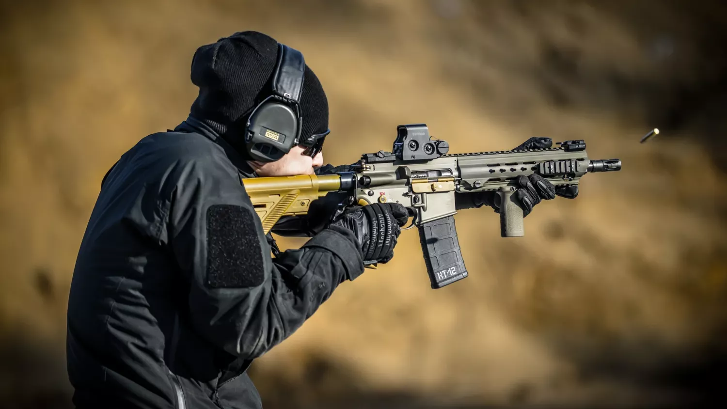 The MR223 is available in 11, 14.5 and 16.5 inch barrel lengths. The cold-hammer-forged and hard-chrome-plated precision barrels are free-floating and ensure optimum accuracy. This applies to match disciplines as well as to hunting. The Slim Line handguard with HKey interfaces fits snugly on the extended barrel nut and offers a wide range of individual options for special equipment. The extendable Slim Line buttstock makes the MR223 extremely easy to handle and can be optimally adjusted to the length of the shooter’s body by means of locking positions. The flared magazine well supports quick changing of magazines and is compatible with NATO STANAG standard magazines .