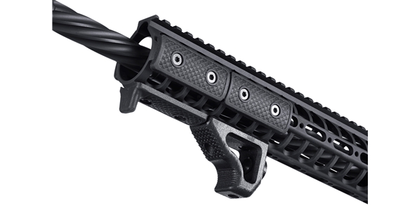 Angled foregrip/handstöd som passar i LWRC handguards. Handstödet har ett inbyggt QD-fäste.
