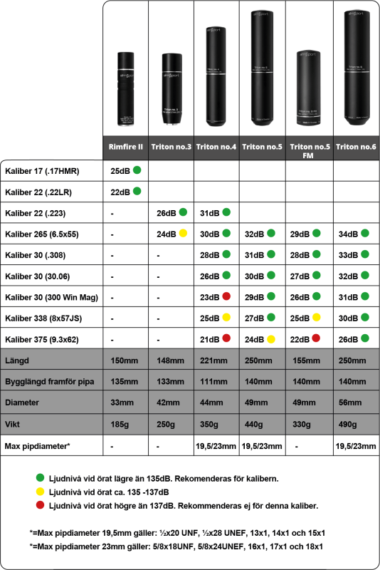 Observera att risk för hörselskador alltid föreligger vid skytte, oavsett kaliber och val av dämpare. Iaktag stor försiktighet även om du har ljuddämpare!