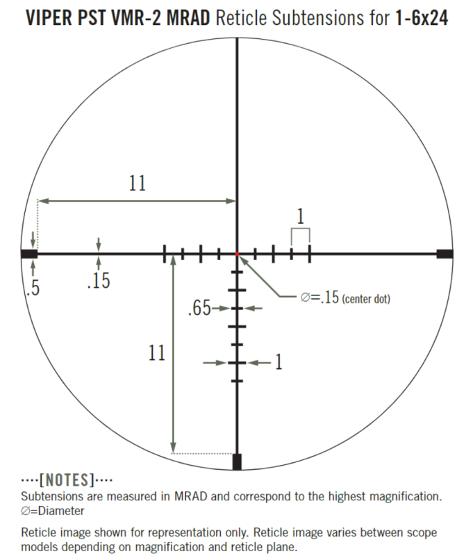 The Viper PST Gen II hands an unfair advantage to shooters who seek to keep the upper hand in every situation from close quarters to long-range shots. The illumination dial is located on the opposite side of the windage knob for easy access and streamlined performance. The reticle offers shooters highly functional, intuitive, and detailed hold points, yet remains uncluttered for optimal viewing and features 10 intensity levels with off positions between each setting.